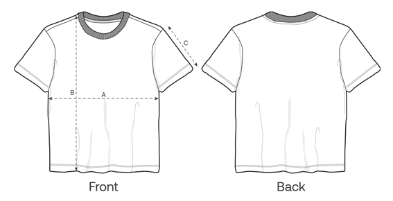 | Größe | Brust (A) | Länge (B) | Ärmel (C) |